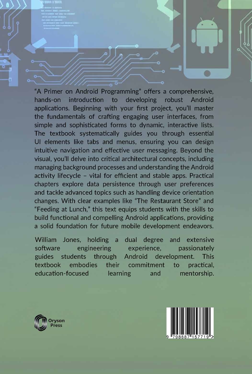 William Jones, holding a dual degree and extensive software engineering experience, passionately guides students through Android development. This textbook embodies their commitment to practical, education-focused learning and mentorship.