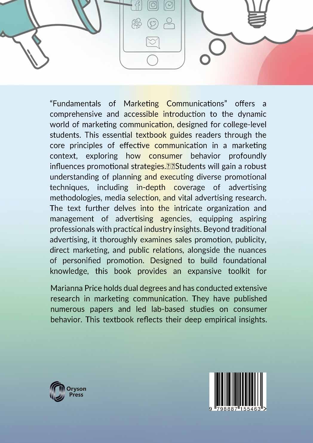 Marianna Price holds dual degrees and has conducted extensive research in marketing communication. They have published numerous papers and led lab-based studies on consumer behavior. This textbook reflects their deep empirical insights.