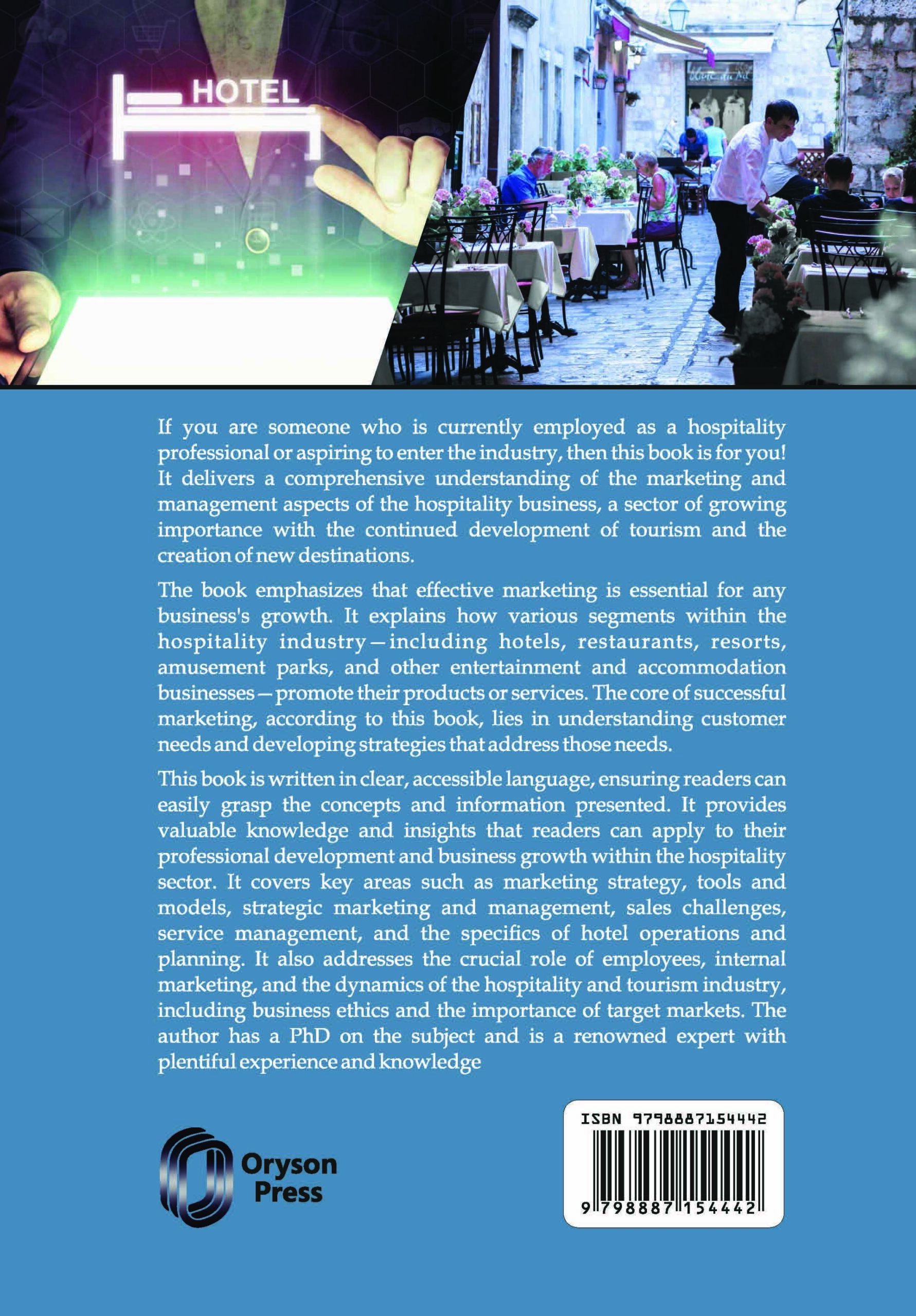This book is written in clear, accessible language, ensuring readers can easily grasp the concepts and information presented. It provides valuable knowledge and insights that readers can apply to their professional development and business growth within the hospitality sector. It covers key areas such as marketing strategy, tools and models, strategic marketing and management, sales challenges, service management, and the specifics of hotel operations and planning. It also addresses the crucial role of employees, internal marketing, and the dynamics of the hospitality and tourism industry, including business ethics and the importance of target markets. The author has a PhD on the subject and is a renowned expert with plentiful experience and knowledge