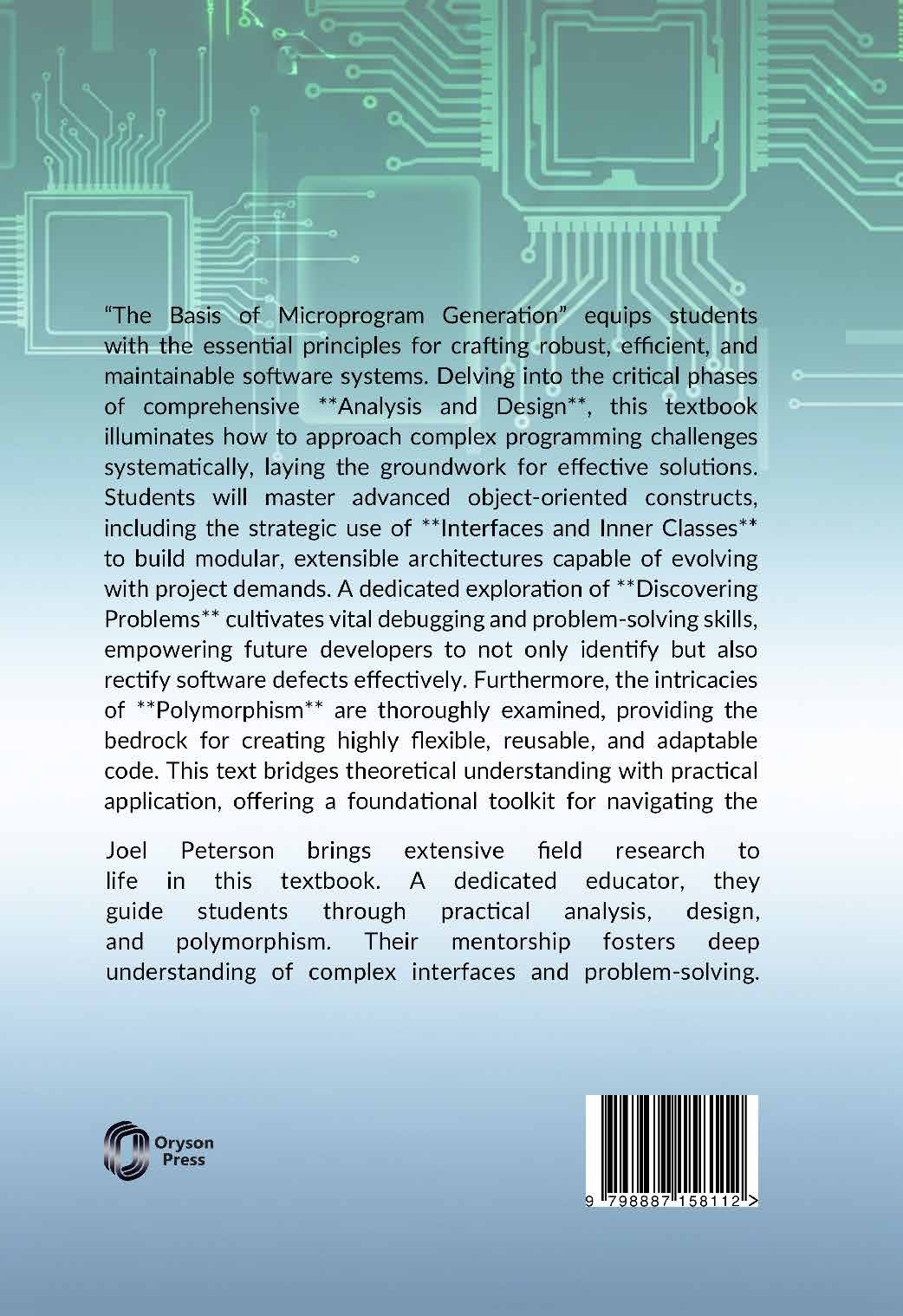 Joel Peterson brings extensive field research to life in this textbook. A dedicated educator, they guide students through practical analysis, design, and polymorphism. Their mentorship fosters deep understanding of complex interfaces and problem-solving.