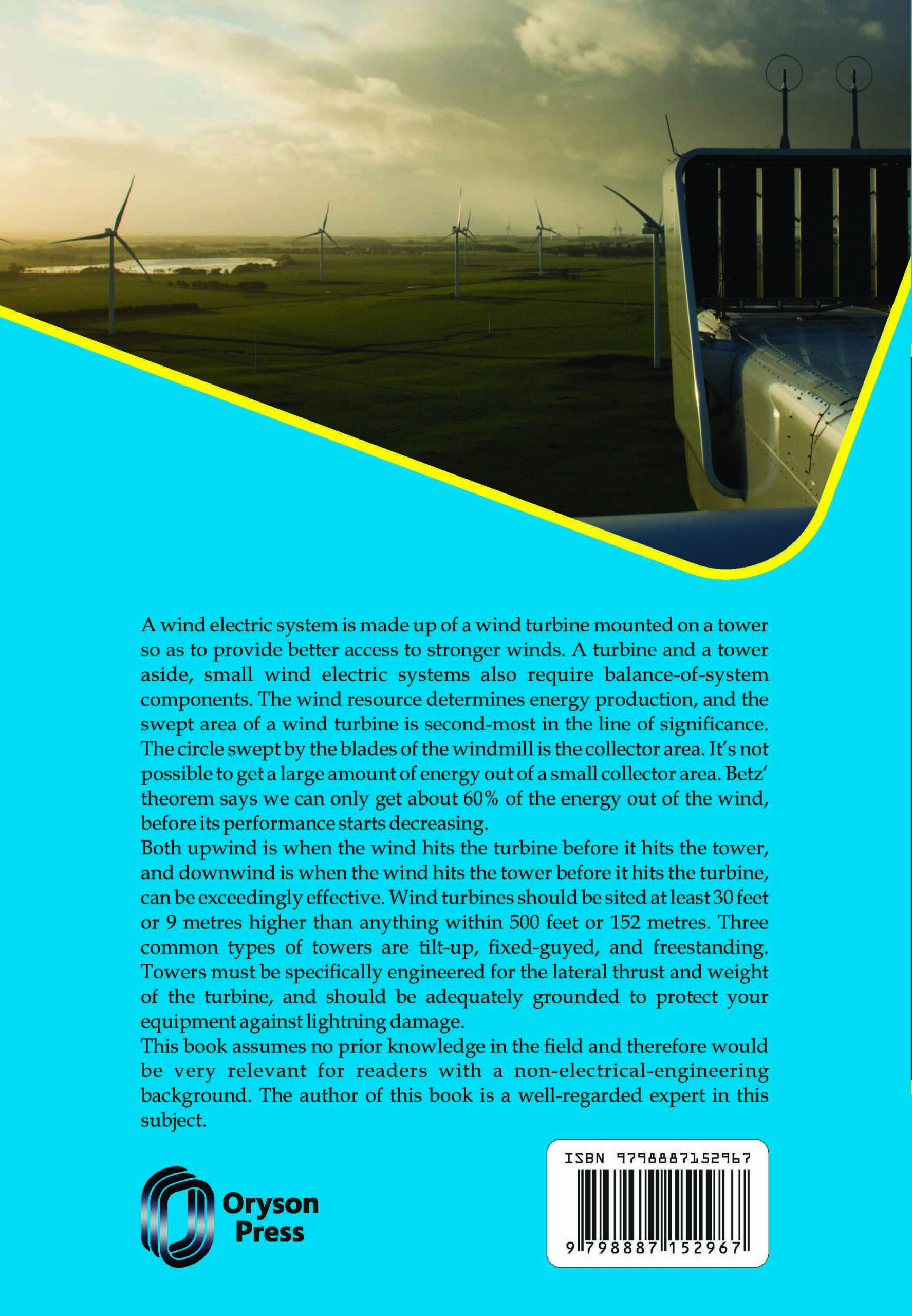 A wind electric system is made up of a wind turbine mounted on a tower so as to provide better access to stronger winds. A turbine and a tower aside, small wind electric systems also require balance-of-system components. The wind resource determines energy production, and the swept area of a wind turbine is second-most in the line of significance. The circle swept by the blades of the windmill is the collector area. It’s not possible to get a large amount of energy out of a small collector area. Betz’ theorem says we can only get about 60% of the energy out of the wind, before its performance starts decreasing.